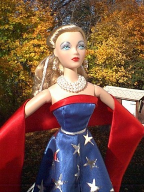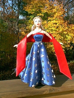 "Gene" is manufactured by Ashton Drake Galleries and was created by designer Mel Odom in 1995. Here are some photos of a blonde "Simply Gene" doll dressed in a patriotic gown I made using Vogue pattern #7381. Jewelry purchased from Chrestina at "DollyDelights" on Ebay. Dolly Delights Auctions