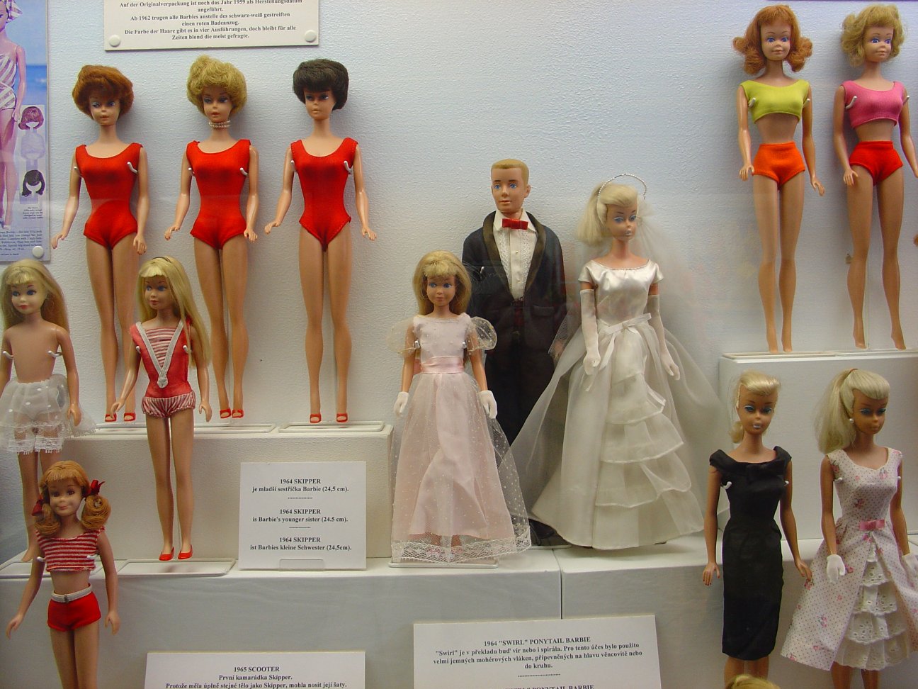 The following photos were sent to me by Susanne. They were taken in 2006 at a Doll Museum in Prague. These photos show wonderful examples of Barbie dolls from the 1950's, 1960's, and 1970's, as well as some modern day "Pop Culture" Barbie dolls. Click on each picture to see an enlarged version. Many thanks to Susanne for sharing these beautiful images with us!