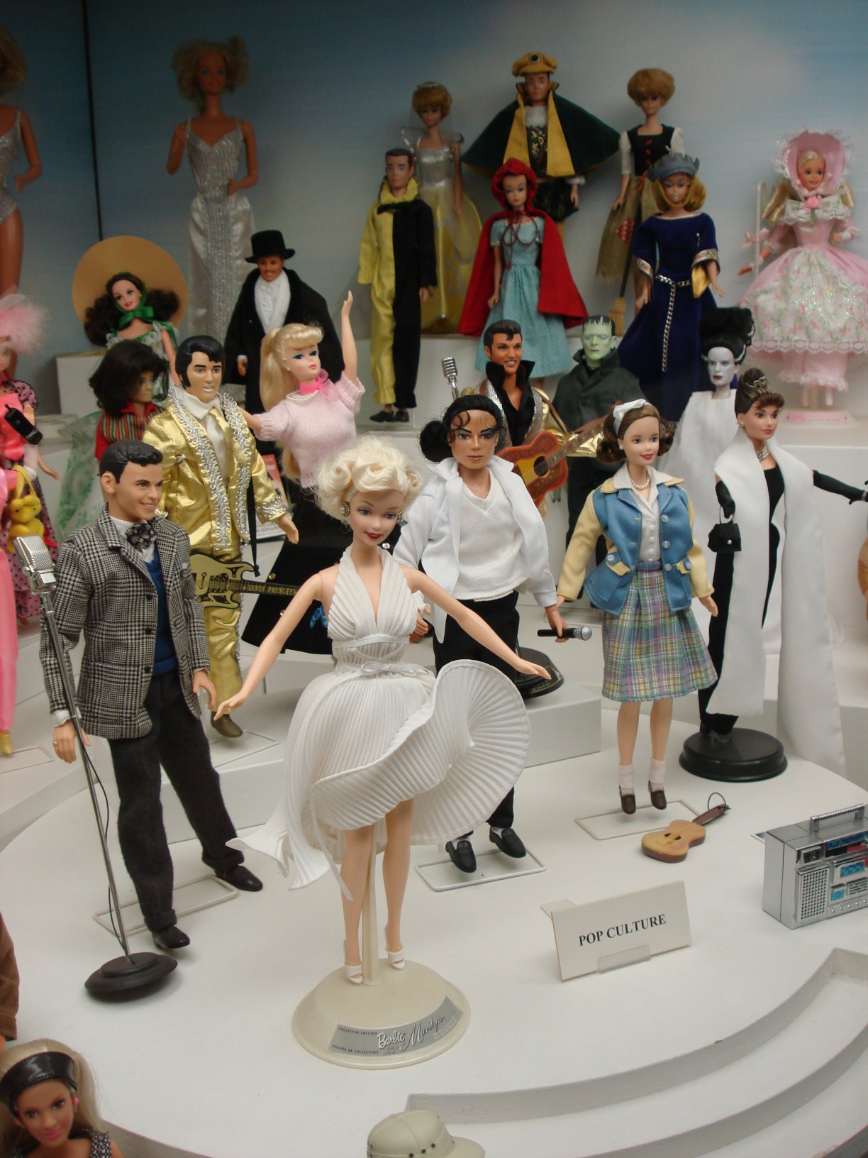 The following photos were sent to me by Susanne. They were taken in 2006 at a Doll Museum in Prague. These photos show wonderful examples of Barbie dolls from the 1950's, 1960's, and 1970's, as well as some modern day "Pop Culture" Barbie dolls. Click on each picture to see an enlarged version. Many thanks to Susanne for sharing these beautiful images with us!