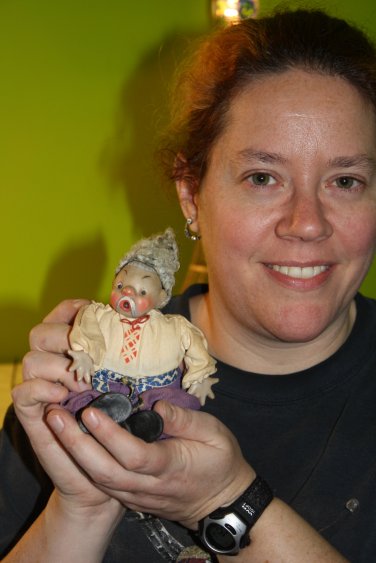 The photo above shows my friend Mary-Sarah with one of her favorite dolls. I was admiring him in a recent photo of her doll cabinet and I asked who he was. Here is her response: "The fat little guy you liked was my grandfather's favorite doll. He was a Russian immigrant and the guy is a Cossack. I had my tonsils out when Star Wars was released. I couldn't go out in crowds so I went over to my grandfather's house. He had just moved from NYC to CT to be near my brother and me, his only grandkids. We spent the day unpacking my aunt's dolls. He said I could pick one, so I chose a Spanish dancer (my daughter Tati's current favorite). Then he gave me the Cossack, and I've always treasured him because of the association."